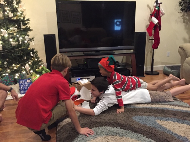 Because Christmas was on a Sunday, there were some adjustments to our typical schedule in celebrating Christmas. After Sunday worship, we celebrated Christmas at home with the boys.